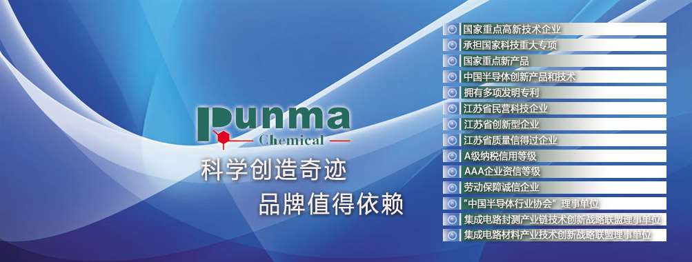 • 2009年江陰潤瑪公司承擔了“十一五”國家02重大科技專項“極大規模集成電路制造裝備及成套工藝”——“超凈高純電子化學品品質提升和產業化及高純包材的產業化技術研究”;2013年承擔了“十二五”國家02重大科技專項“通訊與多媒體芯片封裝測試設備與材料應用工程”——“WLP 等高端先進封裝用蝕刻液”。公司作為負責單位或重要參與單位,陸續起草了多項超凈高純電子化學品領域國家標準和行業標準!驹敿殹